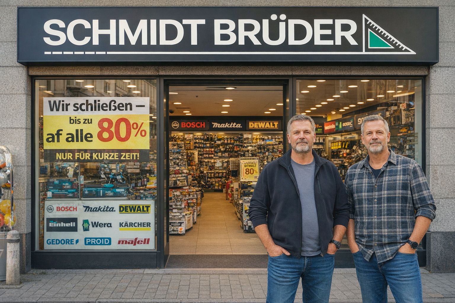 Um dieses Kapitel im echten Schmidt Brüder-Stil zu beenden: Alle verbleibenden Produkte jetzt bis zu -80 % reduziert. Danach wird unser Geschäft endgültig geschlossen – dies ist Ihre letzte Chance, unsere Kollektion zu sichern.